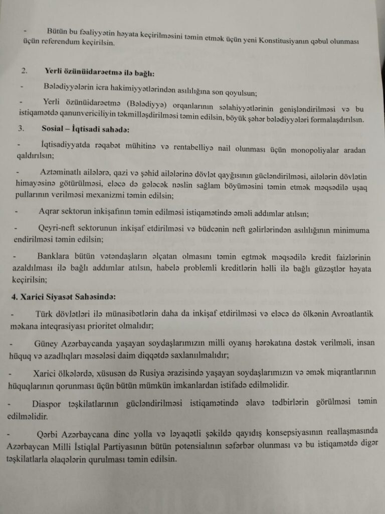 Qətnamədə Azərbaycanın siyasi, sosial-iqtisadi və xarici siyasət sahələrində islahatların aparılmasının zəruriliyi xüsusi vurğulanıb.